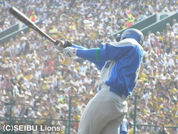 4番 ブラゼル 右飛 2-1から真ん中高めの変化球を打ち上げてしまい、ライト・桧山が悠々とキャッチ |