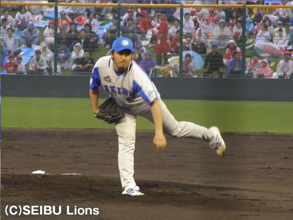 投手 石井一 ライオンズ先発は00年5月以来の福山での登板となる石井一 |