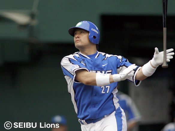 5番 G.G.佐藤 右邪飛 真ん中高めストレートを打ち上げてしまいライトへのファール |