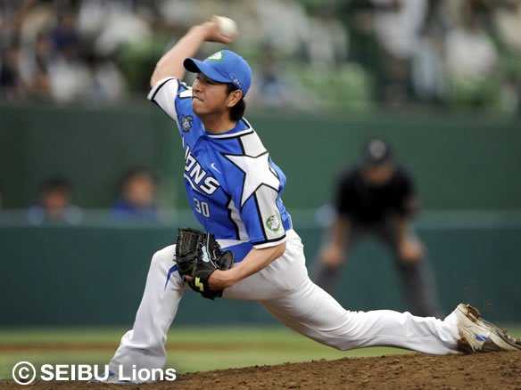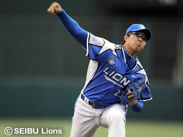 投手 帆足 同い年、バッテリーを組む細川の3ランに援護をもらった帆足。 この回をばっちり抑えて勝ち投手の権利を! |