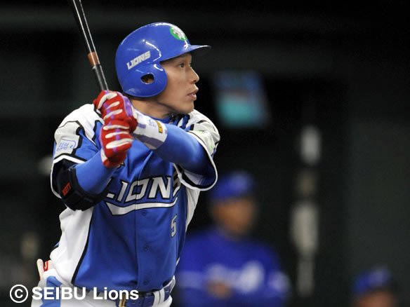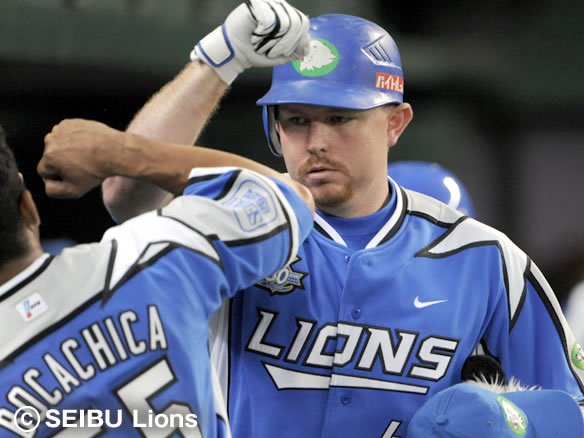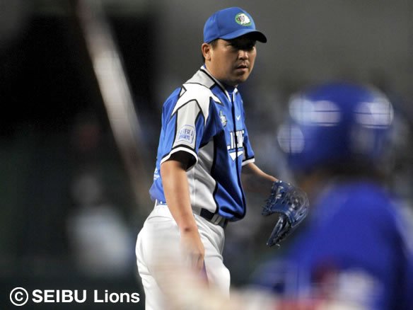 5番 G.G.佐藤 投ゴ アウトサイドのスライダーにバットの先で当てただけ。 ピッチャー・桑原謙が飛びついてキャッチし、そのまま1塁送球 |