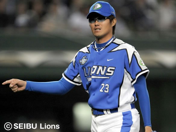 投手 桑原 5番 G.G.佐藤 二飛 7球粘るも真ん中高めのスライダーを打ち上げてしまい、セカンド・仁志が下がって捕球 |