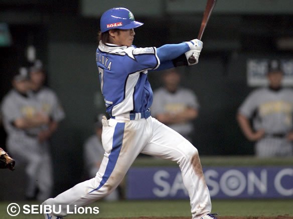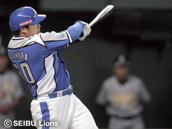 5番 G.G.佐藤 二ゴ 初球外角高めのストレートをセカンド前へのゴロ |