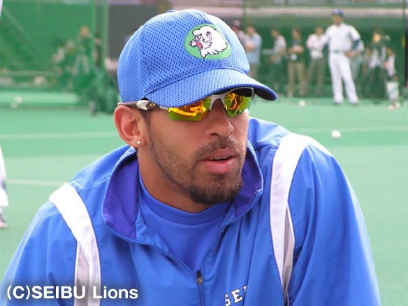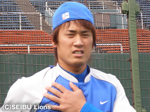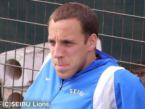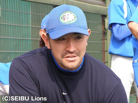 投手 小笠原 5番 G.G.佐藤 三ゴ 2-0から内角高めのストレートを引っかけてしまう |