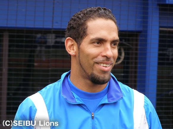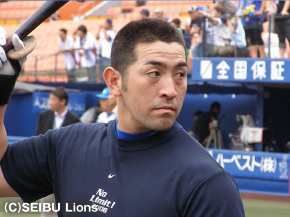 投手 加藤武 5番 G.G.佐藤 右安 外角中央のストレートをライト方向にきれいに運ぶ! |