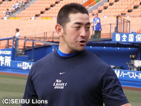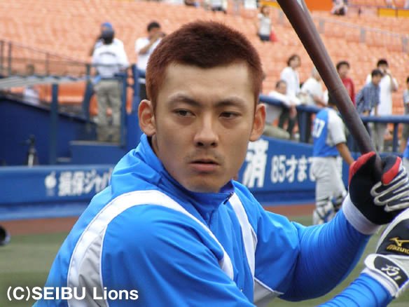5番 G.G.佐藤 左安 内角低めの変化球をレフト左に引っ張る! |