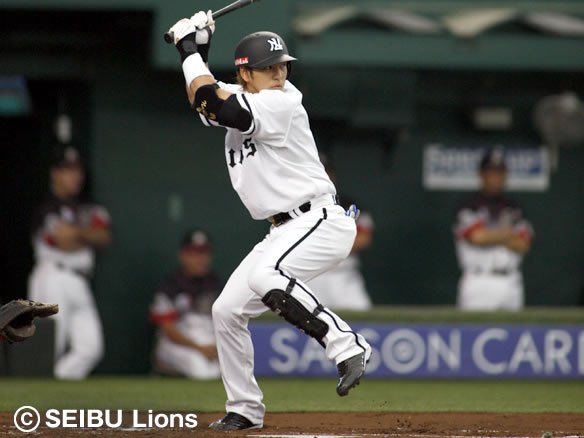 投手 小林宏 1番 片岡 左翼二 ど真ん中のカーブを引っ張った打球はレフトフェンス直撃! 片岡、3試合連続の初回ヒット! |