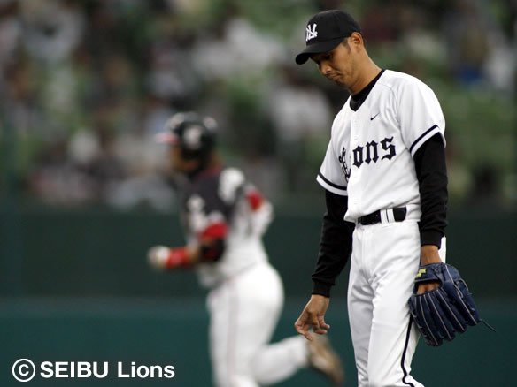 投手 西口 8番 今江 中飛 外角スライダーを打ち上げ右中間へのフライ。センター・栗山が回りこんで捕球 |