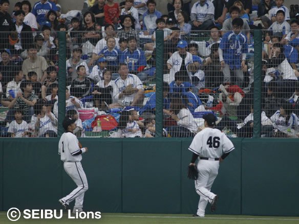 4番 里崎 右飛 天井に向かって上がった打球をライト・G.G.佐藤が前進してキャッチ! |