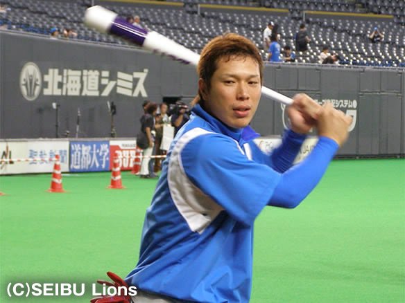 5番 G.G.佐藤 右安 2-1から外角高めのストレートをライト前にクリーンヒット!! |