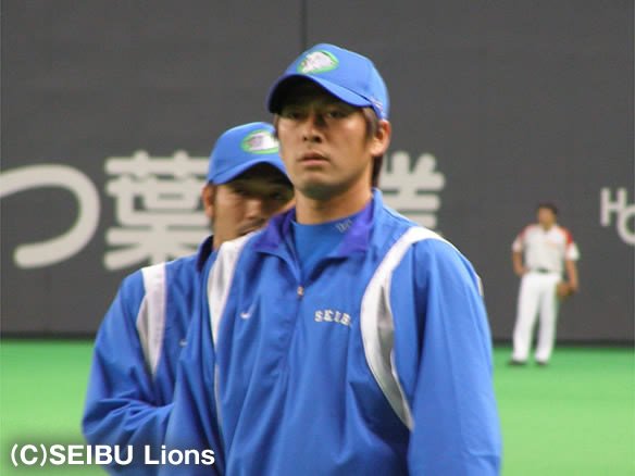 投手 ミンチェ 9番 金子誠 右飛 2-2から外角高めの変化球を打ち上げ、G.G.佐藤が前進して捕球! |