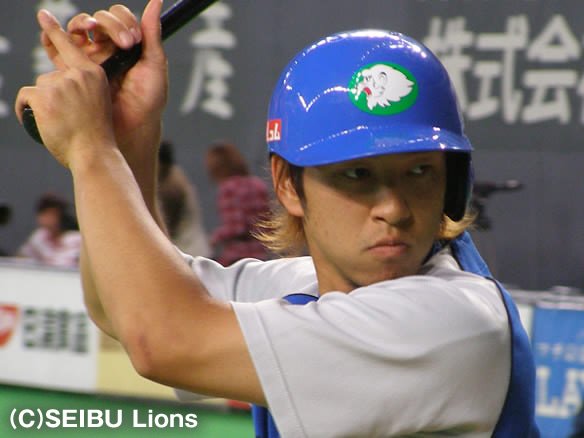 5番 G.G.佐藤 右安 フルカウントから外角低めのカットボールにバットを投げ出すようにしてライト前にポンッと運ぶ! |