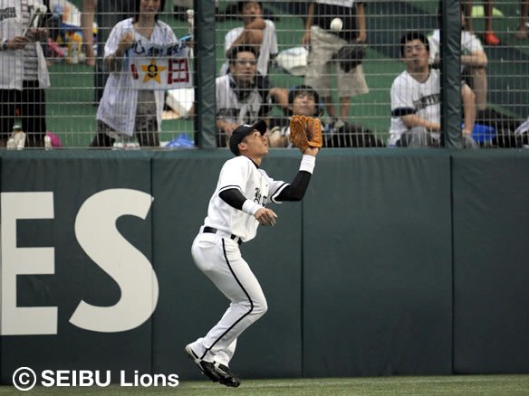 小田の打球を捕球するレフト・栗山