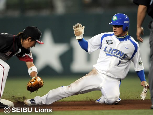 2番 オーティズ 遊安 フルカウントから三遊間に引っ張った打球をサード・中村が捕球を躊躇してしまいショート・中島がダイビングして止めるも1塁に送球できず |