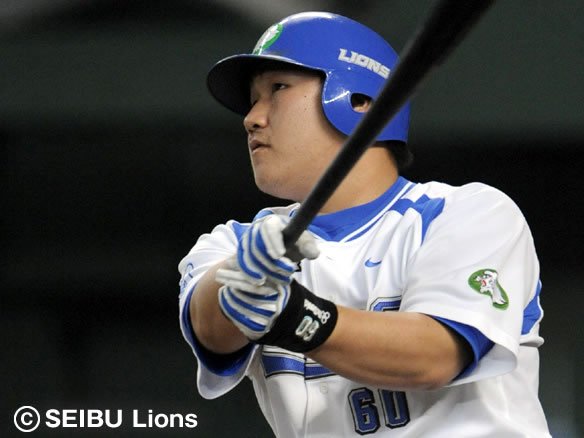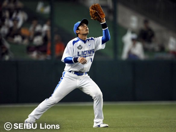 2番 栗山 左飛 外角高めのストレートを打ち上げてしまいレフト・ベニーが回りこんで捕球 |