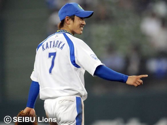 投手 岡本 1番 西岡 二ゴ 2-0から低めスライダーを一二塁間に引っ張った打球をセカンド・片岡が回りこんで捕り1塁ジャンピングスロー!片岡ナイスプレー! |