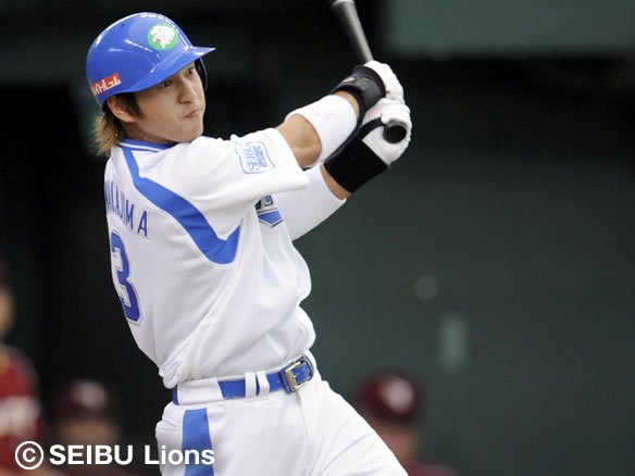 4番 セギノール 遊飛 1-1から内角低めの変化球を打ち上げショート・中島が3塁まで回りこんでキャッチ!! |