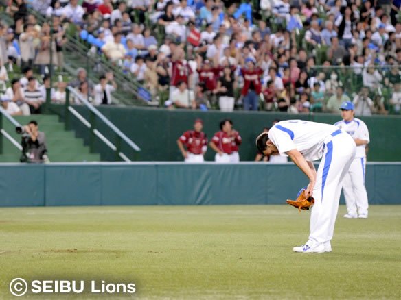 投手 佐竹 【投手交代】 E:朝井→佐竹 一気に流れはライオンズにキター!! 朝井はここで降板。 |