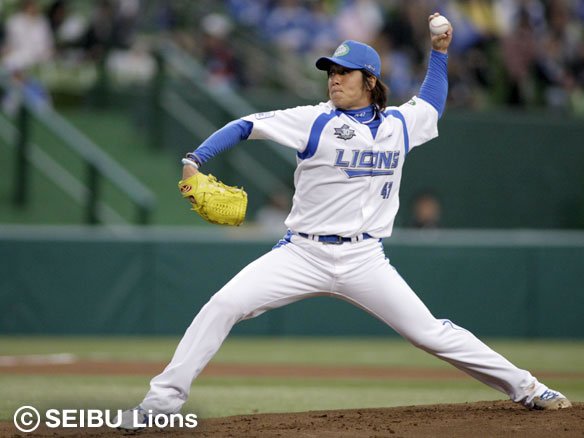 投手 武田勝 2番 栗山 空三振 フルカウントからの7球目、外角低めのチェンジアップにつられてしまう |