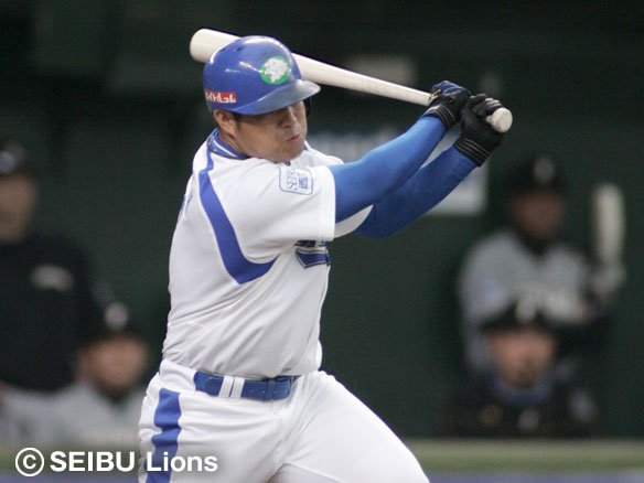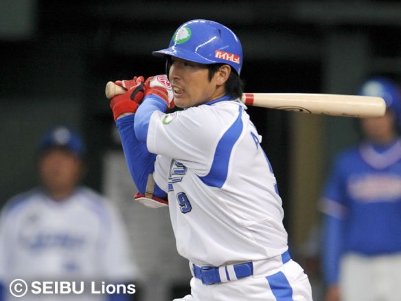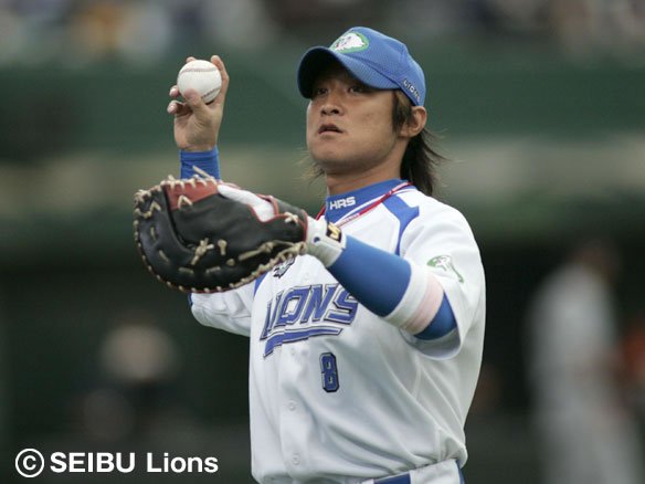 投手 帆足 9番 金子誠 右安 2-2から外角高めのストレートを流し一二塁間を破る |
