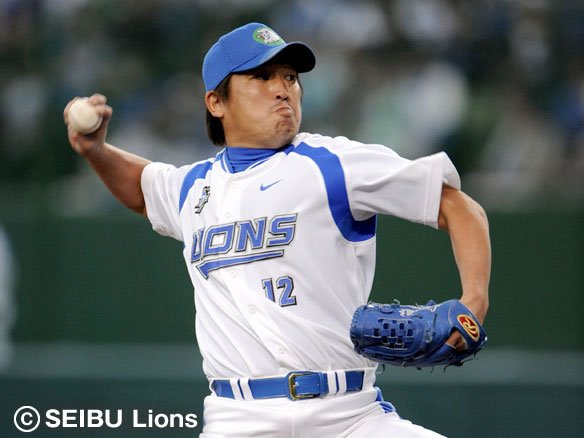 投手 帆足 ライオンズ先発はいつものようにグラウンドに一礼してマウンドに上った帆足。そしてボールに気持ちを込めます。 |