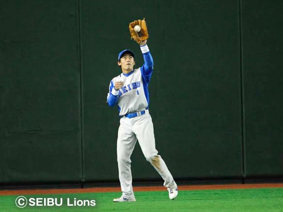 代打・阿部の打球をセンター・栗山がキャッチ!