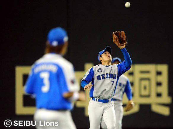 2番 木村拓 中飛 1-1から内角中央のパームボールをおっつけた打球もセンター・栗山が後ろに下がってキャッチ! |