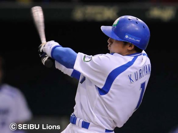 1番 潘武雄 左安 2-3から外角高めのシュートをサード・中村の頭上を越えレフト前へ |