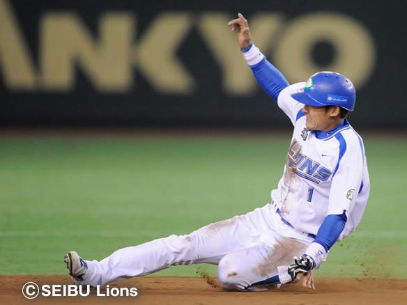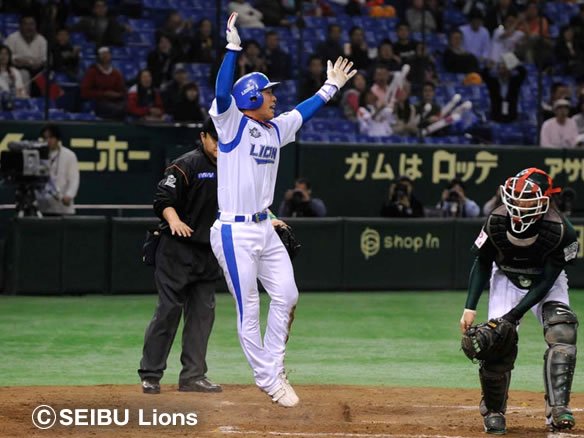 6番 佐藤 左中二 2-1から真ん中低めのストレートを弾き返した打球は左中間へ!!ランナー・石井義は3塁ストップかと思われたが、果敢にホームを攻めホームスライディングセーフ!!!!! 埼玉西武ライオンズアジアNo.1!!劇的なサヨナラ勝ち! 西武1x-0統一 ![]() 1
