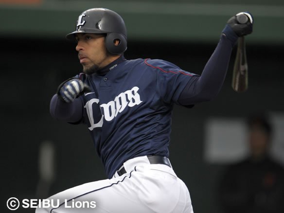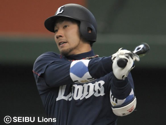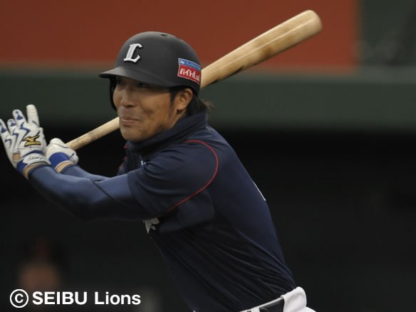 3番 ボカチカ 左安 ど真ん中へ入った変化球を思い切り引っ張った打球は、飛び込んだサード・脇谷の横を抜けた! 2塁ランナー・佐藤が還り、ライオンズ先制!1対0。 ![]() 1
