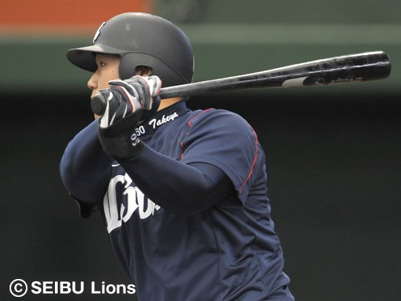 ここまで毎回安打のライオンズ、この回も先頭の石井義のヒットを足がかりに、原の技ありのタイムリーで2点を追加! |