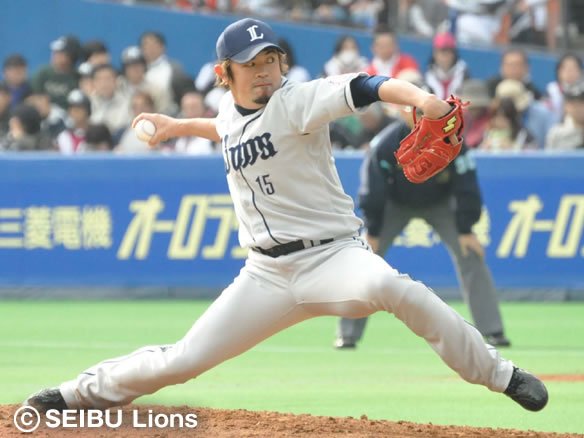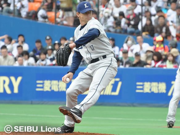 この回から代わった3番手・大沼は、持ち前の力のこもったストレートで押し、わずか8球で3者凡退に封じました! 試合の流れはライオンズに傾きつつある! |