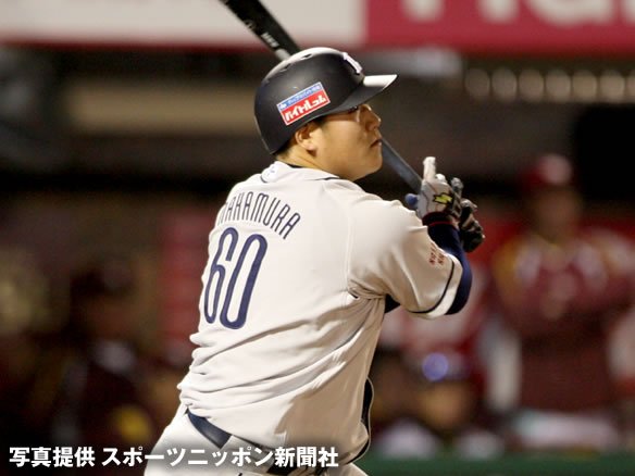 1番 片岡 サードゴロ 2-1から低めの変化球を叩きつけて高いバウンドとなったが、サード・中村紀に素早く処理されてしまった・・・。2塁ランナーのボカチカも3塁へは進めず。 |
