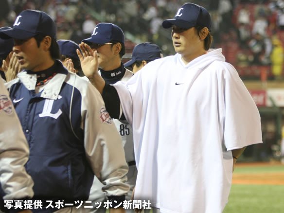 投手 涌井 投手 大沼 【埼玉西武選手交代】 投手・涌井→大沼 センター・ボカチカ→佐藤 ここまで138球を投げていた涌井はここで降板。8回を投げ、被安打3、奪三振7、与四死球3、無失点という素晴らしい投球を見せ、2番手・大沼に最終回のマウンドを託します! |