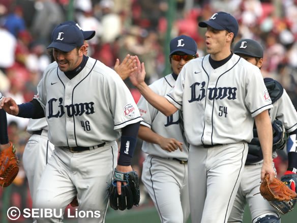 いきなり無死満塁のピンチを迎えた帆足でしたが、セギノール、中村紀から連続三振を奪うなどし、見事に無失点で切り抜けました! |
