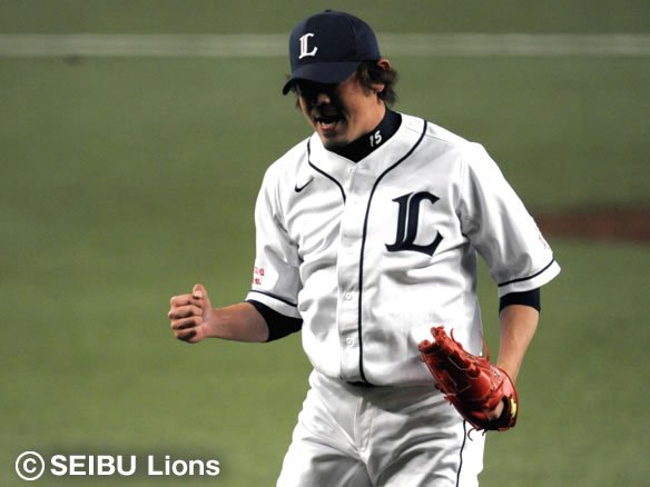 この回も得点圏にランナーを背負った涌井でしたが、2者連続三振を奪ってファイターズに追加点を許さず! 試合の流れをライオンズに引き寄せました! |