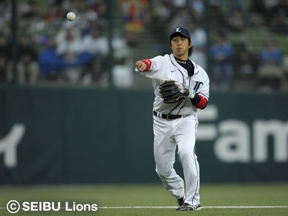 投手 成瀬 2番 栗山 三ゴ失 初球を逆方向へ強烈に弾き返し、サード・今江が打球を捕りきれずこぼした。すぐに拾われて1塁へ送球されたが、送球が浮いて1塁はセーフ! 記録はサード・今江のエラー。 |