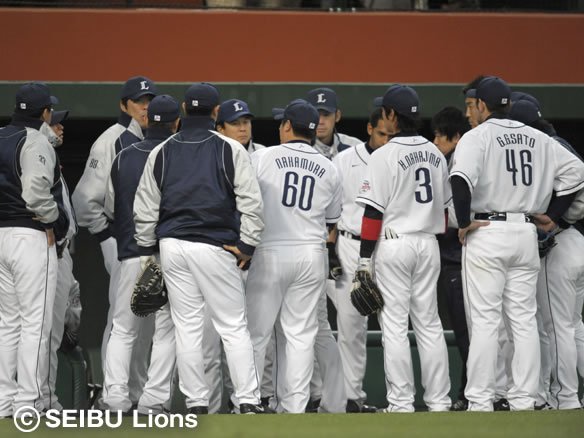 なんとか好投の帆足を援護したいところでしたが、この回は成瀬の前にわずか5球で攻撃を終えてしまいました・・・。現状を打開するような攻撃を見せていきたいところです! |