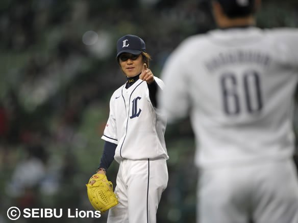 この試合初めてランナーに3塁まで進まれましたが、しっかり踏ん張ってこの回も無失点に封じました! 息詰まる投手戦が続いていますが、ライオンズが試合の均衡を破りたい! |