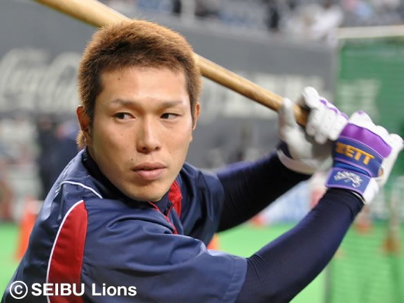 6番 G.G.佐藤 空三振 初球からバントの構えを見せたが、最後はヒッティングに切り替え。しかし2-2から、低めのカーブにバットが空を切った・・・。 |