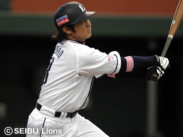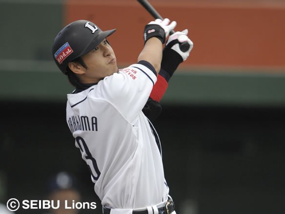 2番 栗山 二ゴ 0-3から高めのストレートを叩きつけたが、セカンド・高須にジャンピングキャッチでおさえられた。3塁ランナーの片岡はホームへ突っ込めず、そのまま。 |