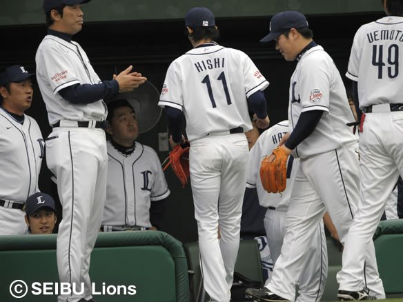 初回からライオンズ打線が爆発! 川井から一挙4点を奪い、岸に大きな援護を与えました! |