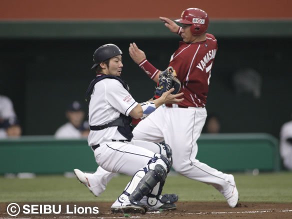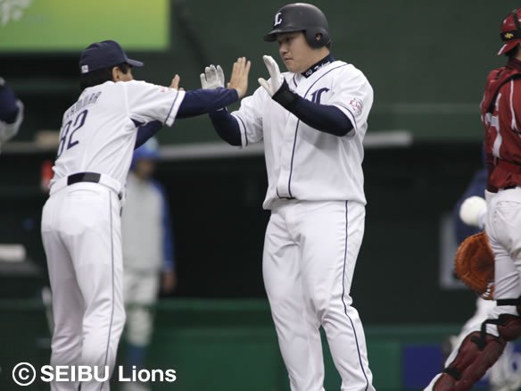 今季初先発の松坂の初安打を足がかりに、2点を返して3点差に詰め寄りました! 試合の流れはライオンズに傾きつつある!! |