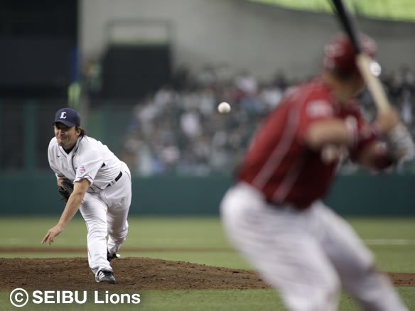 昨日の再現のように初回から猛打爆発といきたいところでしたが、初先発・井坂の前に3者凡退に封じられてしまいました。しかし試合はまだまだ始まったばかり。ライオンズ打線の恐ろしさが分かるのはこれから! |