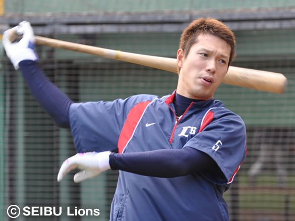 2番 栗山 左安 初球のアウトコースへの変化球を叩き、痛烈に三遊間を破った! |