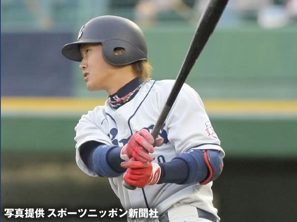 5番 平尾 右越二 2-2から5球目のアウトコースのストレートを押っつけ、鋭いライナー性の打球がフェンスに直撃した。平尾は悠々2塁到達! |