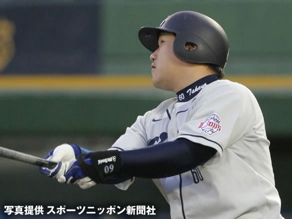 6番 G.G.佐藤 四球 1-3から高めのスライダーを悠々見送った! |