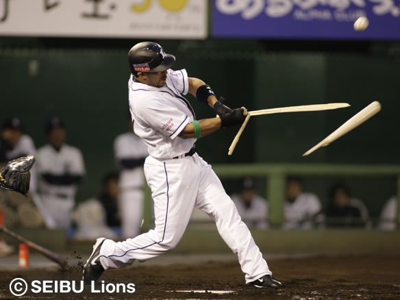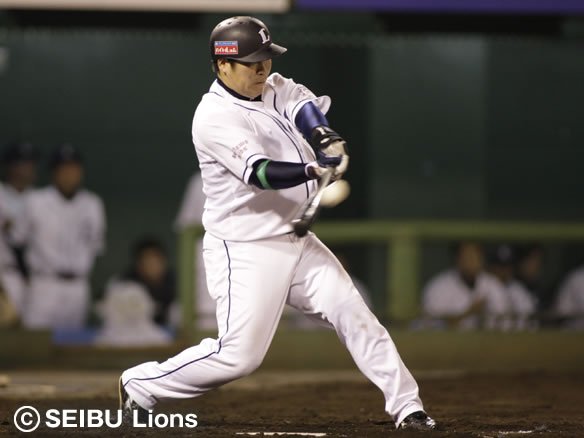 6番 G.G.佐藤 三ゴ 1-1からの変化球を打ち損じてしまい、サード・森野にさばかれた。 |