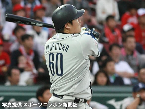 片岡が出て、栗山が繋ぎ、中島が還すという理想的な得点パターンで先制し、さらに中村の一発まで飛び出していきなり4点を先制しました! 先発の西口にとって強力な援護となりました! |