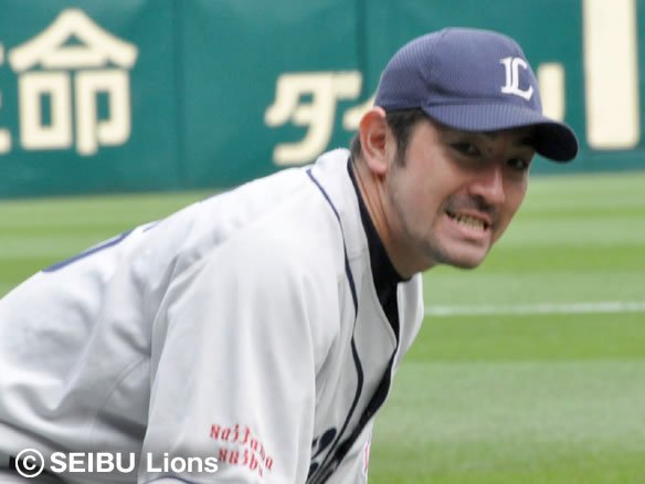 7番 平野恵 右安 フルカウントからインコースのスライダーを引っ張られると、ライナー性の打球がライト・G.G.佐藤の前に落ちた。2塁ランナー・新井は3塁ストップ。 |